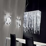 Axo, Glitter 48 Suspension Light The Axo Glitter 48 Suspension Light, designed by Candido Mammini, is part of a lamp collection featuring chains of mirrored glass element with a polished steel frame. The light comes in two sizes. The small measures 18 wide x 61" high and the large measures 18" wide x 74" high. Both lights use five 100W halogen bulbs or five 20W fluorescent bulbs.